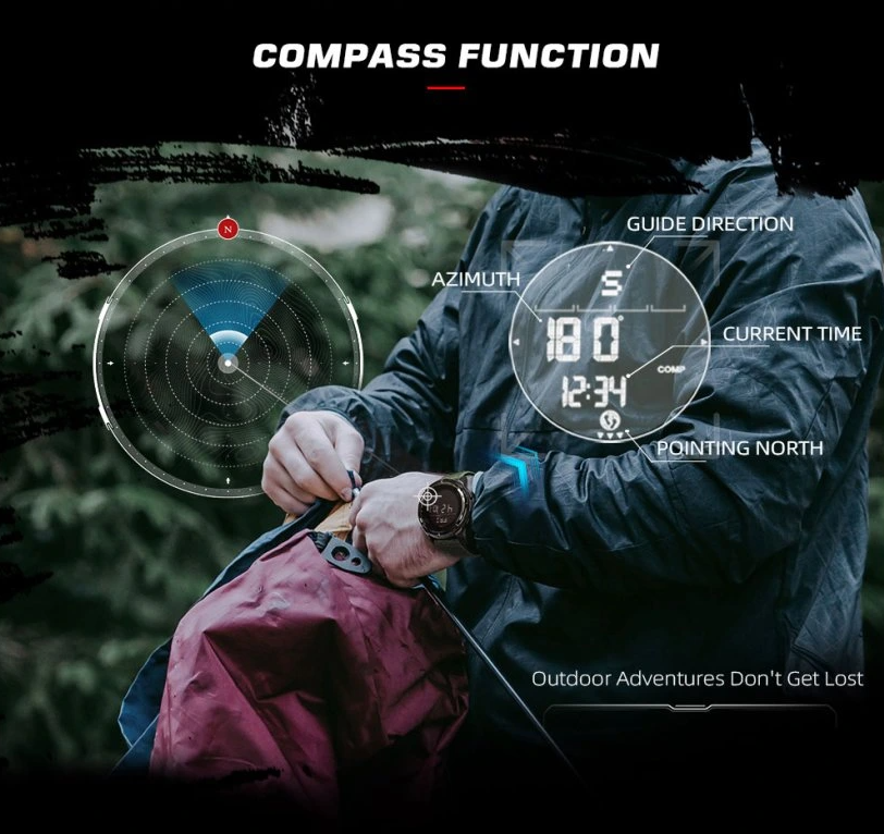 Прецизният вграден компас ви позволява да се ориентирате в непознати терени, идеален за походи или пътувания.
