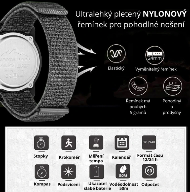 В свят, в който времето контролира всичко, North Edge ALPS предоставя часовник, който не само измерва времето, но и издига вашия стил и функционалност на ново ниво. За тези, които отказват да правят компромиси между функция и дизайн, представяме перфектния спътник за ежедневните приключения.