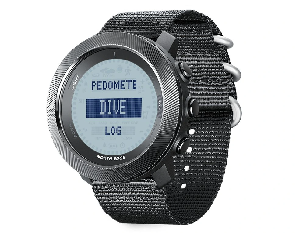 Entdecken Sie die North Edge Apache D, eine multifunktionale Uhr für alle, die die Kontrolle über Zeit, Leistung und Umgebungsbedingungen haben wollen - egal, ob Sie in der Stadt, auf einem Bergpfad oder unter der Meeresoberfläche unterwegs sind.