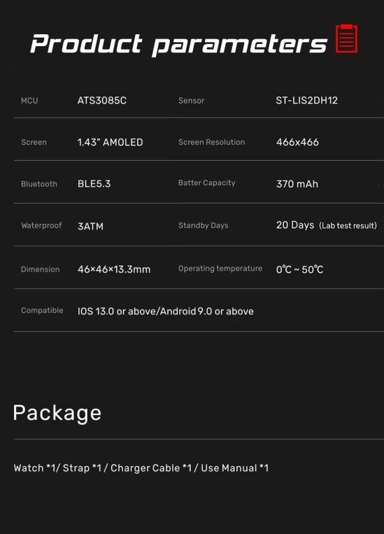 - Anzeige: 1,43'' AMOLED, 466×466 px Auflösung